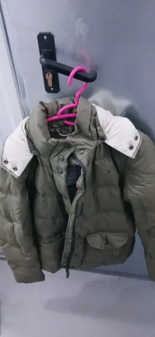 Chaqueta plumífero de la marca Tommy Jeans en color azul. Ideal para el frío. - axila a axila= 52 - bolsillos laterales. - Capucha con forro rojo. - Cierre de cremallera frontal. - Detalle de logo en la manga.
