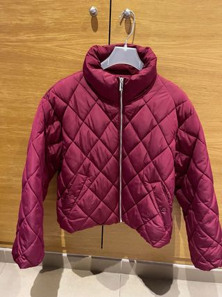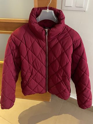 Chaqueta bomber de Parfois en un bonito color rojo granate. Es una prenda acolchada con un diseño de rombos. - Cuello alto. - Cierre de cremallera. - Bolsillos laterales. - Talla M/L - Muy calentita y super ligera de peso. ( La vendo porque me está grande. sin la etiqueta pero nueva e impecable)