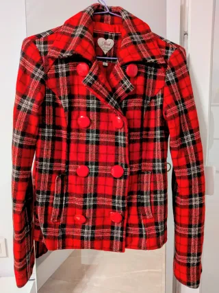 Chaqueta de cuadros con un diseño llamativo y navideño ideal para estas fechas. - Cuadros en rojo, negro y blanco. - Cierre de botones. - Bolsillos frontales.