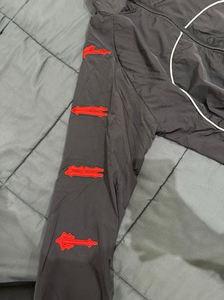 Chaqueta deportiva con el escudo del Arsenal. - Diseño con franjas rojas en las mangas. - Paneles de color rojo y negro. - Cierre de cremallera frontal.