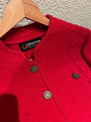 Chaqueta de lana de la marca Gottstein en color rojo. - Diseño con trenzado decorativo. - Cierre de botones. - Cuello redondo.