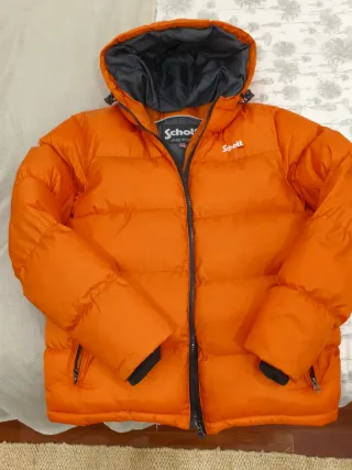 Chaqueta de plumas de la marca Schott en color naranja. Está impecable !!! Es una prenda cálida y cómoda. - Diseño acolchado. - Capucha integrada. - Cierre de cremallera frontal. - Bolsillos laterales con cremallera.. Dos bolsillos interiores