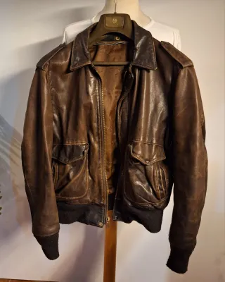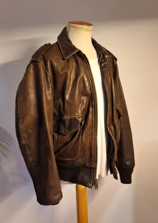 Chaqueta aviador de la marca Schott. Flight jacket. Cuero grueso ,comprada en NYC en los 80.Muy bien conservada.Recien hidratada.Hay pocas en buen estado.Precio mercado de 400€ a 700€ aprox. Medidas de axila a axila 52cm Mangas 64cm Hombros 51cm Largo desde arriba de la cremallera hasta abajo 57cm. Mas chaquetas en mi perfil. Avirex, Aeronáutica Militare, Redskins, Chaqueta de vuelo,chupa vintage, cafe racer, Harley Davison, Daitona. Ralph Lauren. - Diseño clásico G1. - Confeccionada en piel. - Color marrón.