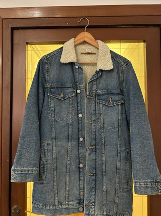 Chaqueta tejana forrada con piel de borrego por dentro. Talla S, del Pull and Bear.