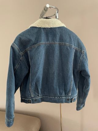 Cazadora tejana clásica con un cálido forro interior. - Cuello con forro sherpa. - Cierre de botones metálicos. - Dos bolsillos en el pecho con solapa.