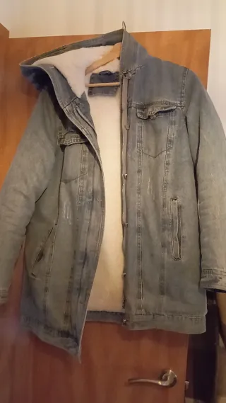 Chaqueta tejana con capucha y pelo interior