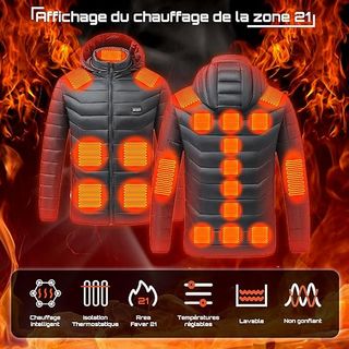 Chaqueta con capucha y sistema de calefacción integrado. Cuenta con tres niveles de calor ajustables para mayor comodidad. - Diseño acolchado. - Capucha desmontable. - Incluye batería externa y cable USB. Amplia zona de calentamiento: La chaqueta térmica cuenta con 21 zonas de calentamiento (espalda media, abdomen izquierdo y derecho, cintura izquierda y derecha, hombros izquierdo y derecho, y otras zonas medias del cuerpo). La fibra de carbono calienta las zonas del cuerpo de forma rápida y eficiente para garantizar la máxima calidez y comodidad.