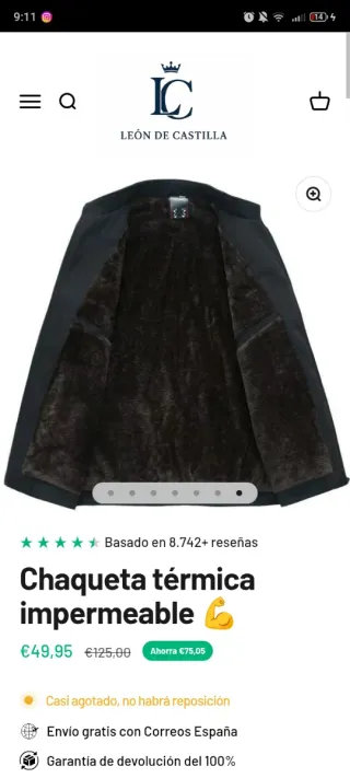 Chaqueta térmica e impermeable de la marca León de Castilla. Ideal para mantenerte abrigado y seco. - Color negro. - Interior forrado para mayor calidez.