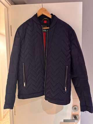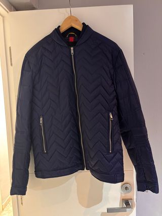 Chaqueta acolchada original Antony Morato, en color azul marino, con diseño elegante y moderno. Ideal para otoño e invierno, cómoda y ligera pero con buen aislamiento térmico. Cuenta con: Cierre frontal con cremallera Dos bolsillos laterales con cremallera Acolchado con tecnología Sustans (DuPont™ Sorona®) Diseño en patrón geométrico Acabados de calidad y corte actual Talla: M (48) Estado: Muy buen estado, sin desperfectos ni signos de uso relevantes (ver fotos). Cualquier duda, escríbeme sin problema. 👉 Tengo más artículos a la venta en mi perfil.