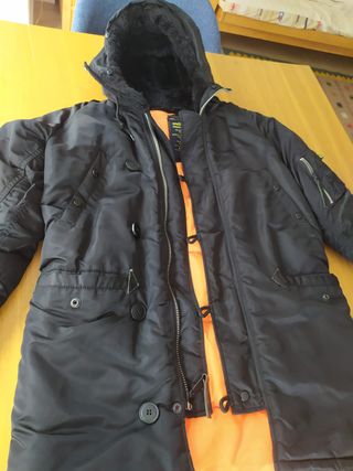 Cazadora técnica marca Alpha Industries, usada solo una vez. Comprada en Estados Unidos. - Chaqueta forrada - Bolsillo con cremallera en manga - Bolsillos laterales de botones - Bolsillos inferiores laterales de solapa con cierre botón - Cordón de ajuste - Bolsillo interior - Cierre cremallera y botones - Capucha forrada de pelo sintético - Cuello removible de pelo sintético Modelo unisex diseñado con materiales técnicos, especialmente para los meses más fríos con temperaturas extremas. Excellente rendimiento térmico. La vendo porque después de comprarla me he mudado a lugares de climas cálidos donde no me hizo falta.