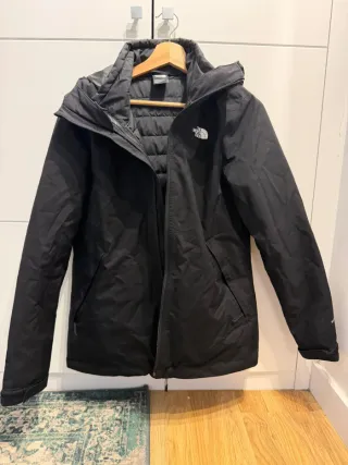 Chaqueta The North Face Carto Triclimate con capucha para mujer. 3-en-1, impermeable + térmica. - Modelo original con sistema modular Triclimate. - Capa exterior DryVent™ + capa interior térmica Heatseeker™. - Se pueden usar juntas o por separado. - Ideal para lluvia, frío y uso urbano o outdoor. - Color negro. - Talla M. Precio original: 310€