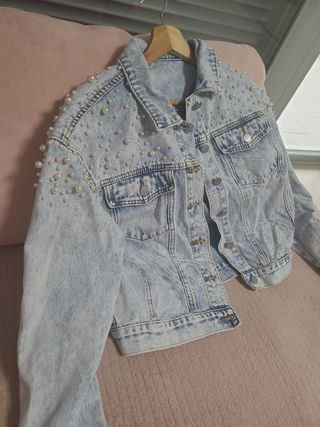 Chaqueta vaquera Stradivarius con perlas T.XS