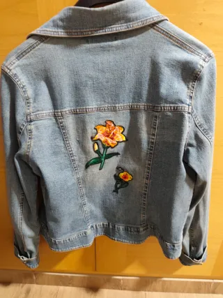 Chaqueta vaquera con un diseño único y detallado. (era de Stradivarius pero la lleve a una modista para bordarla a mano , todos los detalles Estan echoo a mano) - Bordado a mano. - Detalles en pedrería y perlas. - Mangas acampanadas con adornos.