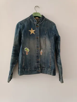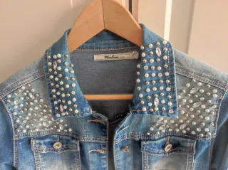 Chaqueta vaquera con un diseño único y llamativo. - Decorada con perlas y tachuelas. - Estilo moderno y original.
