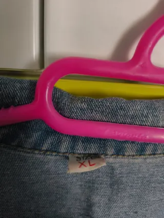Preciosa cazadora vaquera de color azul, decorada con un elegante cuello y un detalle central de perlas y pedrería. Talla L no muy amplia. - Diseño único y llamativo. - Combina estilo casual con un toque sofisticado. - Ideal para darle un toque especial a cualquier look.