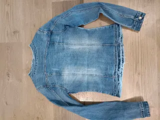 Cazadora vaquera con un diseño único y detalles de perlas alrededor del cuello como nueva de la talla 8 (122/128 cm) - Cierre de botones. - Dos bolsillos en el pecho. - Puños abotonados.
