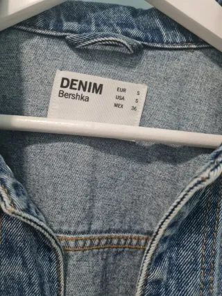 Chaqueta vaquera de estilo desgastado con detalles de texto. - Diseño con cuello - Cierre de botones - Bolsillos en el pecho - Inscripción not in the mood en la solapa - Inscripción keep distance en la manga Comprada en brasil, la marca es de allí, por eso he puesto que es de bershka por que no me sale la marca