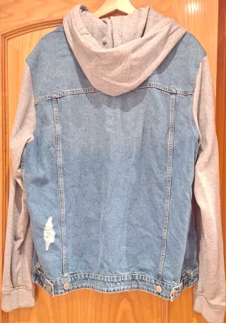 Chaqueta vaquera con mangas de sudadera gris. Importante : talla L de ella es pequeña como M