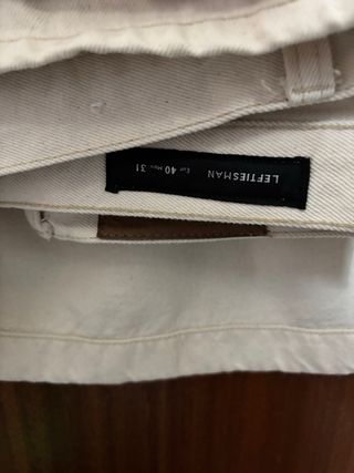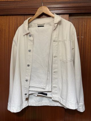 Conjunto vaquero de Lefties en talla L. El color es beige y el tejido es de algodón. - Chaqueta vaquera. - Pantalón vaquero. - Se venden por separado, 10€ cada uno