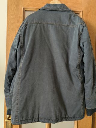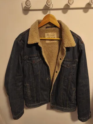 Modelo clásico, denim resistente y muy cómodo. Está en buen estado general: sin roturas, sin manchas y con las costuras firmes. Como detalle: tiene un ligero desgaste en la parte interior del cuello, apenas visible cuando la llevas puesta (lo muestro en una foto para transparencia). Perfecta para entretiempo o para llevar con camiseta básica.