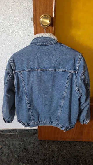 Chaqueta vaquera azul del Bershka. Abriga muy bien, especialmente para otoño e invierno.