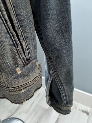 Preciosa chaqueta vaquera de estilo oversize. Está en muy buen estado. - Diseño desgastado con rotos estratégicos. - Corte holgado y cómodo.