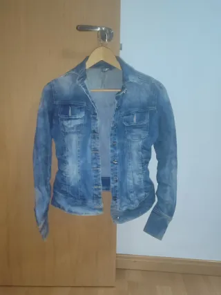Chaqueta vaquera de corte entallado. - Diseño clásico con botones. - Dos bolsillos en el pecho. - Efecto desgastado.