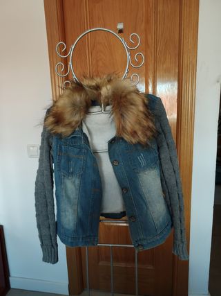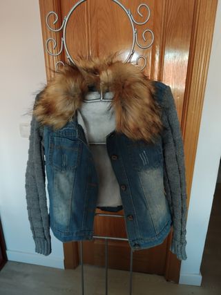 Preciosa chaqueta tejana en talla S. Está en muy buen estado. - Tiene un cuello de pelo sintético precioso. - Las mangas son de punto color gris. - Es de un tejido suave y agradable al tacto. - No hago envíos.