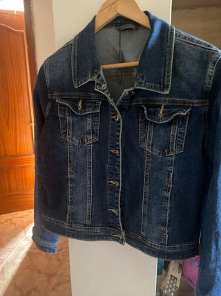 Chaqueta vaquera de entretiempo, sin forrar. A ESTRENAR Llega hasta la cintura, mangas un poquito estrechas. Marca XL, pero no es ancha. Entrego en mano en Collado Villalba.