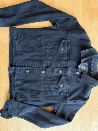 Chaqueta vaquera, color negro, un poco entallada.
