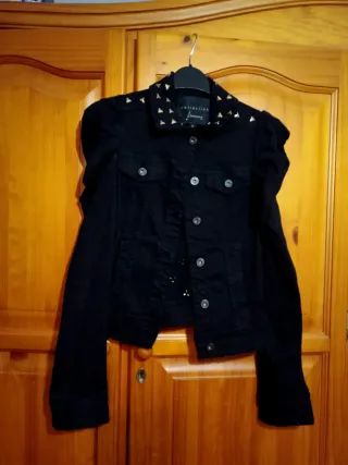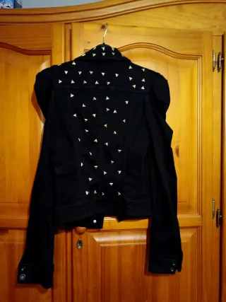 Preciosa chaqueta vaquera negra con detalles de tachuelas plateadas. Es una prenda elegante y con estilo. - Talla XS/S, oversize. - Diseño único con tachuelas. - Tejido de calidad. - De la tienda Alabama en Alicante, todavia en la web aunque agotado, su precio original 79.90.