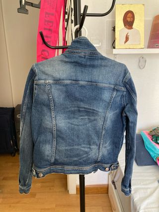 Chaqueta vaquera de Pull&Bear con corte oversize. - Diseño clásico con botones. - Bolsillos en el pecho. - Bajo deshilachado. Sirve para S también M Se recoge en benimaclet Si compráis más cosas hago precio