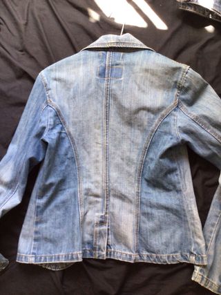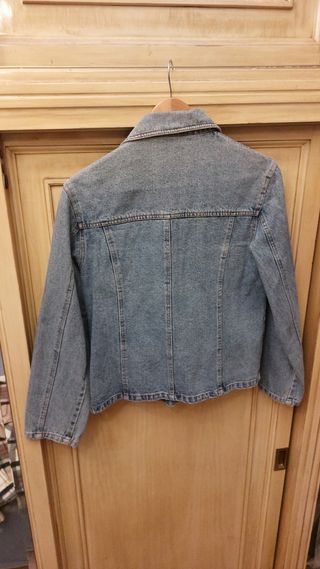 Cazadora vaquera de estilo clásico. - Cuello de canalé. - Cierre de cremallera. - Dos bolsillos en el pecho con botón y dos laterales - Puños y bajo elásticos.No hago envíos