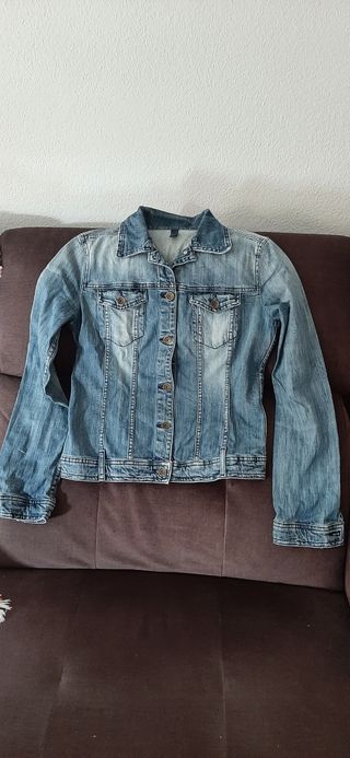 Cazadora vaquera efecto desgastado. Está nueva, hay fotos del cuello y los puños para que se vea. Está nueva. Talla S