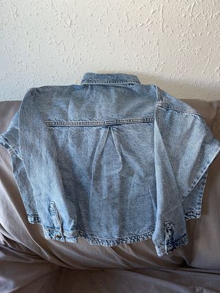 Cazadora vaquera de Zara talla S - Diseño clásico con botones. - Dos bolsillos en la parte delantera. - Puños abotonados.