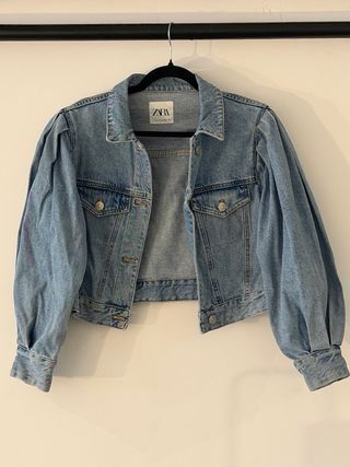 Chaqueta vaquera de Zara con un diseño moderno. - Mangas abullonadas. - Cierre de botones metálicos. - Bolsillos en el pecho.