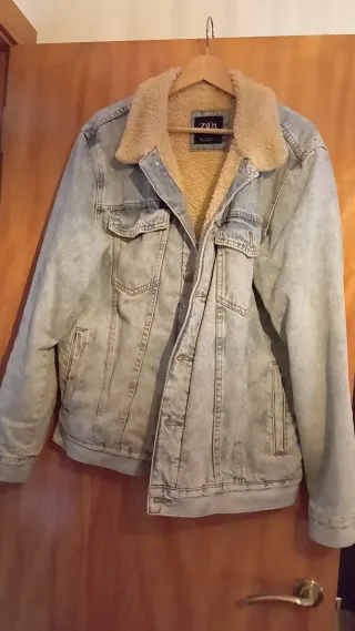 Chaqueta vaquera con borrego en el cuello y el interior de Zara Man Talla M Como nueva
