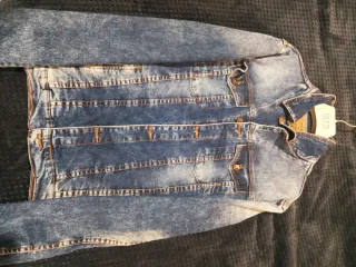 - Conjunto vaquero de pantalon recto talla S estilo chino, sin bolsillos por detrás y chaqueta crop talla M ,con forro por dentro lo que hace que sea más calentita - Puesto en dos ocaciones, sin desperfectos ni manchas,en excelente estado!! - Ideal para entre tiempo