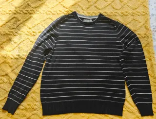 Jersey de rayas de la marca Green Coast (El Corte Inglés). Estado: Impecable, como nuevo. Solo tiene 2 usos reales. Tejido: 100% Algodón de calidad, muy suave al tacto y cómodo. No pica nada. Color: Negro con rayas finas en contraste (estilo marinero/minimalista). Corte: Cuello redondo, sienta genial tanto con vaqueros como con algo más formal. Talla: M (talla correctamente). ✨ Ideal para: Fondo de armario de entretiempo o para llevar bajo una chaqueta. ¡Un básico que nunca falla! Hago envíos rápidos el mismo día o al día siguiente.