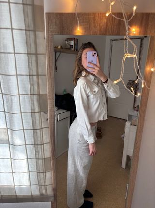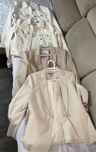 Conjunto de cuatro chaquetas. Chaquetas vaqueras y de vestir de las marcas Mango, H&M, Stradivarius. Colores: : 2 blancas y 2 de color beig. Todas a estrenar. - Chaquetas vaqueras y de vestir. - Cierre de botones. - Bolsillos - Impecables