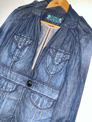 Chaqueta denim de Mango Jeans. Usada, pero en excelente estado (como nueva). • Corte estructurado y favorecedor • Bolsillos delanteros con solapa • Detalles de costuras marcadas • Tejido vaquero de buena calidad Perfecta para entretiempo y muy combinable con cualquier look. Sin defectos ni señales visibles de uso. Si necesitas medidas o más fotos, puedo enviarlas.