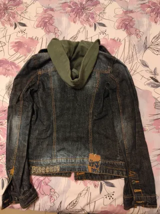Esta moderna cazadora vaquera combina el clásico tejido denim con una práctica capucha integrada de color verde oliva ( puedes retirar la capucha y usarla sin capucha). Es ideal para looks casuales y para el entretiempo. Características: Color: chaqueta azul oscuro (lavado), capucha verde oliva. Detalles: Cierre de botones, bolsillos en el pecho y laterales. Estilo: Casual Estado: como nuevo, poco uso, sin defectos