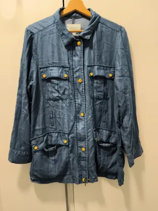 Chaqueta vaquera con un diseño inspirado en la moda militar. - Cierre de botón. - Dos bolsillos en el pecho. - Cintura ajustada con detalle de botón.