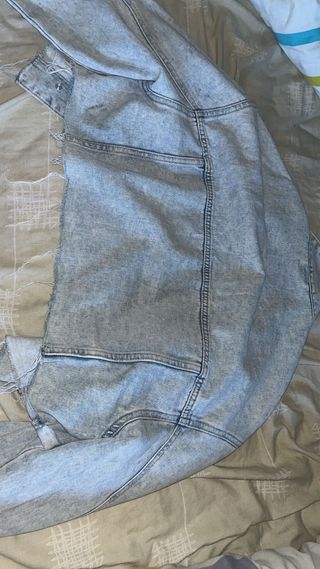 Cazadora vaquera efecto desgastado, vintage años 2000, de algodón Talla L de Bershka, más bien una M Medidas Sisa 50 cm Largo 50 cm Pequeña mancha casi imperceptible en las axilas no he probado a quitarla