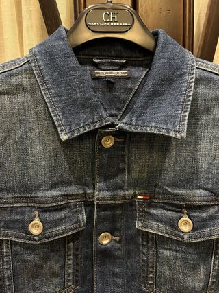 Cazadora denim original de Tommy Hilfiger, en color azul clásico con ligero efecto desgastado. Corte recto y estilo atemporal, ideal para cualquier temporada.