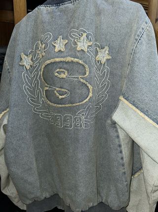Chaqueta estilo bomber de la marca Snipes con un diseño único. Usada varias veces - Detalle de S grande bordada en la espalda. - Adornada con estrellas y laureles. - Número 1998 bordado. - Acabado en tela vaquera.