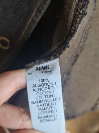 Chaqueta tipo vaquera de la marca MNG Jeans. Diseño de corte entallado con botones. Dos bolsillos delanteros y cuello solapa clásico. 60 cm de largo, 35cm de lado a lado de cintura con la chaqueta cerrada y 42 cm de pecho de lado a lado con la chaqueta cerrada. Color marrón degradado como desgastado.