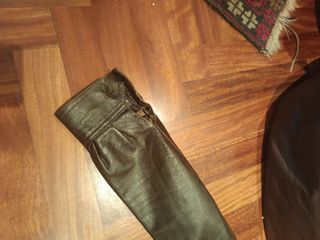 Cazadora negra de piel, con mangas anchas, recién tratada, quedó perfecta. No es esa marca, hecho en España.