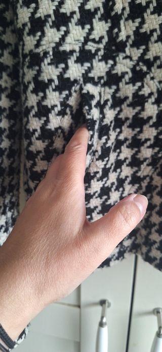 Elegante chaqueta de la marca Adolfo Domínguez. Es una prenda de vestir impecable. Vintage - Tejido de pura lana. - Diseño a cuadros en blanco y negro - Cierre de botones. - Detalle de cinturón en la cintura.