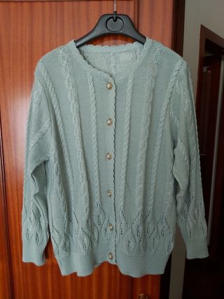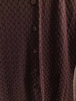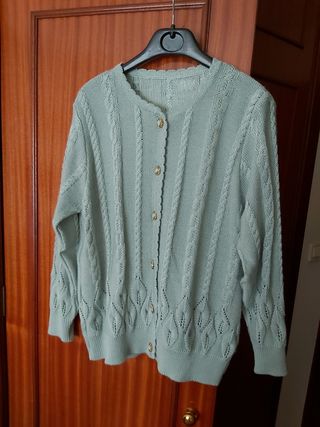 Chaqueta de punto con un diseño intrincado y botones al frente. -Color de temporada otoño/invierno 2025. - Tejido calado con patrón. - Cuello redondo. - Cierre de botones. - Material:elastano. - Utilizada en un par de sesiones fotografícas.